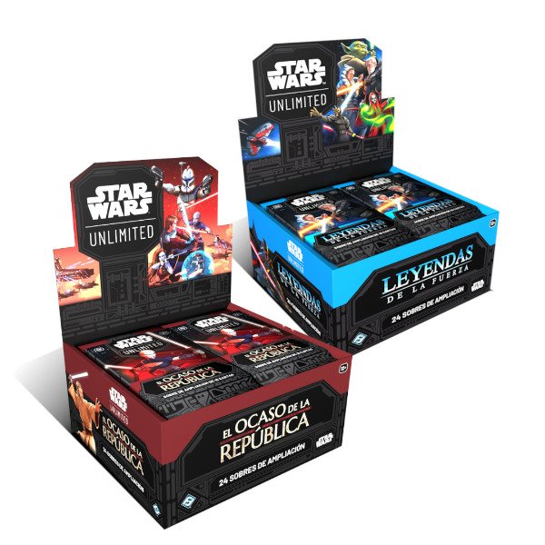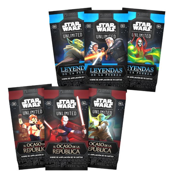 ¡Aumenta tu colección de Star Wars: Unlimited con los combos de ampliación o Booster Packs! La colección El Ocaso de la República recrea los conflictos militares entre la República Galáctica y la Confederación de Sistemas Independientes. La colección Leyendas de la Fuerza presenta personajes y contenido de varias eras de la galaxia de Star Wars, y se centra especialmente en los usuarios de la Fuerza, como jedi, sith y más. ¡Son 48 sobres! Elegí un líder, diseña tu mazo y desafía a tus rivales en este trepidante juego de posibilidades ilimitadas. Cada sobre de ampliación permite diseñar y mejorar mazos para partidas en los formatos uno contra uno, multi jugador, preselección y mazos cerrados.
