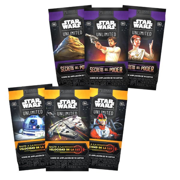¡Aumenta tu colección de Star Wars: Unlimited con los combos de ampliación o Booster Packs! La colección de Salto a la Velocidad de la Luz introduce personajes y contenido de las distintas épocas de la galaxia de Star Wars. La colección Secretos del Poder presenta personajes y contenido procedente de varias eras de la galaxia de Star Wars, dando el protagonismo a espías, políticos, saboteadores y agentes secretos. ¡Son 48 sobres! Elegí un líder, diseña tu mazo y desafía a tus rivales en este trepidante juego de posibilidades ilimitadas. Cada sobre de ampliación permite diseñar y mejorar mazos para partidas en los formatos uno contra uno, multi jugador, preselección y mazos cerrados.